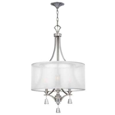 This elegant collection in a Brushed Nickel finish features a sheer translucent double hardback shade and tapered square crystal accents. The fittings have a unique air of elegance, which will influence the surroundings. A variety of matching fittings allow you to match up the lighting theme throughout the room. Whatever the size and shape of your room, you are sure to find the ideal fitting for you.