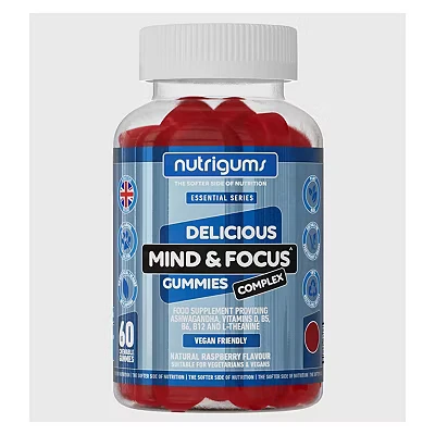 MIND & FOCUS COMPLEX - Contains all the qualities of Ashwagandha, an Ayurvedic herb that has a long tradition of use that helps to support normal mental and cognitive function. SUPPORTS MENTAL PERFORMANCE - Include Vitamin B5, B6 & B12 which contribute to normal psychological function, and reduction of tiredness and fatigue, helping you to maintain energy. SOFTER SIDE OF NUTRITION - Each bottle contains 60 gummies, providing a full 30-day supply for long-lasting health benefits. Adults take 1-2 chewable gummies daily. Children over 12 years of age take 1 gummy daily, or as your health practitioner advises. QUALITY YOU CAN TRUST – At NUTRIGUMS, we source only the highest-quality ingredients from certified manufacturers. Our products are proudly manufactured and packed in regulated, certified facilities. With years of industry experience, we’re committed to delivering functional, top-tier products at the best possible prices for our customers. VEGAN & FAMILY FRIENDLY – Enjoy these natural fruit-flavoured gummies with no added sugar, artificial flavours, or colours. Made with non-GMO ingredients, gluten-free, and suitable for both vegetarians and vegans, offering a healthy and tasty option for everyone. HALAL & KOSHER certified