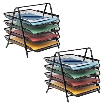 Space-Saving Multi-Tiered Design: Opt for vertical storage with four roomy slide-out trays, perfect for files, mail, documents, folders, bills, and letters, decluttering your desk or counter Stable and Non-Slip: Equipped with rubber feet for secure placement, easily slide trays out without the organizer shifting, while also protecting surfaces from scratches Easy Portability: Transport the 5-tray organizer effortlessly using the convenient carrying handle, making it perfect for any workspace Universal Versatility: Ideal for college dorms, offices, homes, schools, conference rooms, businesses, hotels, or any location where organized space is needed Perfect Dimensions: At 12 x 13.75 x 12.5 inches (30.48 x 34.92 x31.75 cm), this 4-tray organizer accommodates standard-sized documents with ease