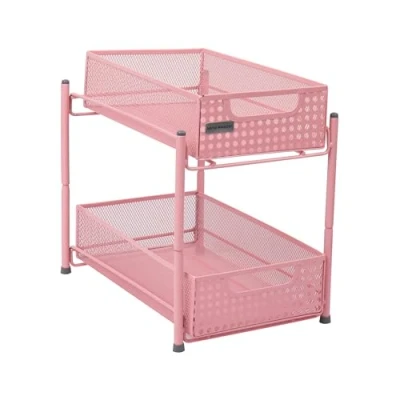 Mind Reader HCABASK2T PNK Cabinet, Mesh Storage Baskets Organizer, Home, Office, Kitchen, Bathroom, Steel, Pink 2 Tier Heavy Duty