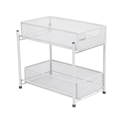 Mind Reader HCABASK2T WHT Cabinet, Mesh Storage Baskets Organizer, Home, Office, Kitchen, Bathroom, Steel, White 2 Tier Heavy Duty