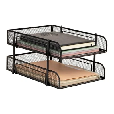 Mind Reader Network Collection, 2 Tier Paper Tray, Letter Size, Stackable, File and Document Holder, Desktop Organizer, Metal Mesh, Black