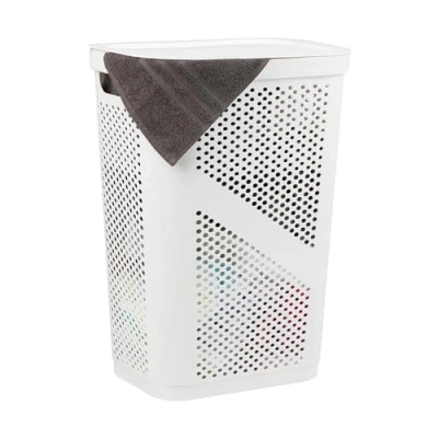 Air-Circulating Design: Ventilated perforated sides help prevent odor buildup and allow for airflow Built for Everyday Use: Strong plastic construction holds up to 60 liters or 33 pounds of laundry, towels, or linens Easy to Carry: Side cut-out handles make it simple to transport your laundry from room to room or to the laundromat Slim and Space-Saving: Compact tapered design fits into tight spots including bathrooms, closets, or beside appliances Roomy Interior Size: Top measures 17.25"L x 13.75"W x 23.5"H (43.8 x 34.9 x 59.7 cm); tapered shape provides a spacious interior while conserving floor space