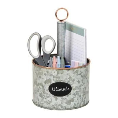 Mind Reader Utensil Caddy with Handle, Kitchen Silverware Organizer, Portable, Galvanized Metal, 6.5" L x W 10.5" H, Silver
