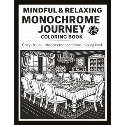 MINDFUL and RELAXING MONOCHROME JOURNEY Coloring BOOK: 50 Cozy House Interiors detailed illustrations For Stress Relief Book Adults ... — Adults, Teens & All Ages)