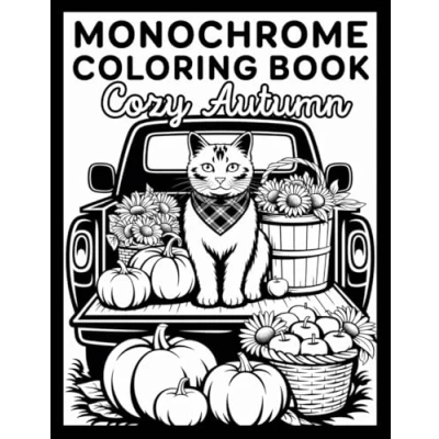 Mindful Monochrome: One Color Coloring Book for Stress Relief and Relaxation featuring Cozy Autumn Illustrations All Ages