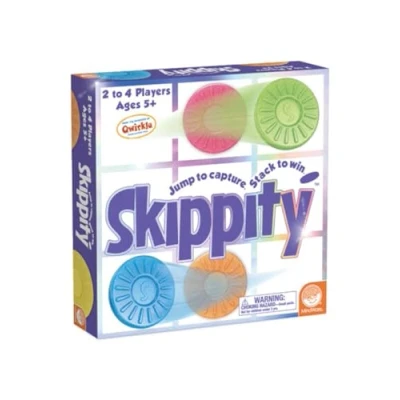 It's easy to learn and fast to play. Kids will jump at the chance to play Skippity. This unique set collection game is designed by Susan McKinley Ross, designer of the award winning Qwirkle! Use straight-line leaps to capture and stack the skippers you hop over. Any skipper can be your jumping piece; they're all fair game. Capture the colours you need while blocking your opponents from capturing the colours they need. When you have one of each colour, its a set. The player with the most complete sets wins., Manufacturer: Mindware