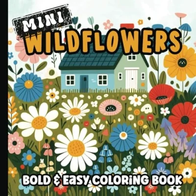 Mini Coloring Book: Bold and Easy Wildflowers Pages for Adults, Teens Kids Big Simple Illustrations Girls Tweens Pocket Size 6 x inches