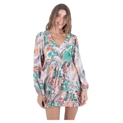 V neck tiered mini dress Elasticated puff long sleeve 33" HPS Hurley metal badge at center back