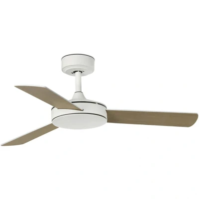 General description The DC Ceiling Fan Mini Mallorca is a stylish and efficient ceiling fan designed for smaller rooms up to 13 m². It features a classic design with a DC motor, providing a quiet and energy-efficient operation. The fan is equipped with a remote control for easy adjustments and includes a reversible blade option for versatile aesthetics. Technical specifications Voltage: 220-240 V ~ 50/60 Hz Diameter: 106 cm / 42" Housing colour: matt white Blade colour: matt white / maple (reversible) Motor wattage: 6.1 / 7.4 / 10.4 / 13.1 / 18.5 / 23.9 W Revolutions per minute: 126 / 156 / 186 / 218 / 240 / 270 Max. airflow: 70 m³/min / 2472 CFM Ceiling to blades: 24.6 cm / 9.7" Overall drop: 31 cm / 12.2" Diameter canopy: 15 cm / 5.9" Max. ceiling slope: 22° Weight: 4.2 kg / 9.3 lbs IP Rating: IP20 Compatibility and accessories Includes remote control with 6 fan speeds / off, timer, and running direction Installation Easy to install Usage Forward and reverse function for summer and