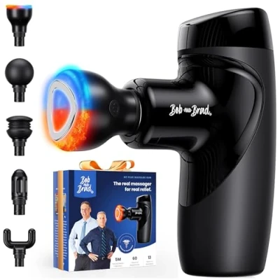 Mini Massage Gun with Heat Therapy, Bob and Brad M7 Plus Portable Deep Tissue Muscle Massager Gun, Handheld Percussion for Full Body Relaxation