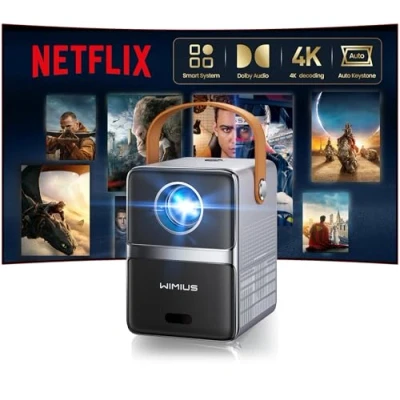 🔔【Officially Licensed by Netflix, No Extra TV Needed】This P61 PRO is a genuine smart tv projector pre-loaded with Netflix, Prime Video, and YouTube. You can safely download Disney+ and more apps. Eliminates the risk of black screens caused by pirated content. Built-in Open Browser, My App, and APP STORE meet your personalised entertainment needs. Its ultra-user-friendly system is simpler to set up than installing apps on your phone: sign in and broadcast to start your happy movie night. 🔔【Immersive Dolby Audio & HDMI ECE/ARC】P61 PRO projector for bedroom comes with Dolby-certified HIFI stereo dual speakers. Combined with cutting-edge AI sound balancing technology, built-in 20W speakers for enjoying Dolby and DTS-certified audio for crisp, clear sound that brings music, instrumentals, and every note of the concert to life as if it's playing right beside you. The portable projector's HDMI ARC feature ensures lossless audio signal transmission for pure and complete sound. 🔔【Native Full HD 1080P & AI-Powered Colour Enhancement】Short Throw Projector delivers an extraordinary visual feast with native 1080P resolution supported by 4K playback compatibility. Enhanced by AI PQ (Picture Quality) technology, German high-transmittance lenses, and HDR 10+, this outdoor projector ensures natural light-to-dark transitions, rich colours, and lifelike skin tones. Enjoy exceptional clarity and contrast, even as a ceiling projector, bringing your video to life with crisp visuals. 🔔【Instant clarity, Precise alignment】The mini projector 4k combines automatic fast electric focus and 6D all-around keystone correction technology, from power on to enjoyment, projector only takes 5 seconds. It abandons tedious manual adjustment; whether it is immersive movies or fierce games, it is ready instantly. The built-in high-sensitivity displacement gyroscope and smart sensor can keenly capture subtle environmental changes, optimise the image in real-time, and present a perfect view. 🔔【Ultra Fast WiFi 6 & Two-way Bluetooth 5.2 & 300'' Display】Its advanced Short Focus Pro Optical Engine with Swiss-crafted lenses. Enjoy a true big-screen cinema experience, free from space limits. Small projector equipped with Wi-Fi 6, lag-free streaming and screen mirroring from your iOS or Android devices. It supports two-way Bluetooth 5.2 audio transmission, allowing connection to mobile devices as a standalone stereo speaker anywhere for a full range of immersive sound experiences. 🔔【Worry-Free Shopping Experience & Lifetime Professional Technical Support】WiMiUS P61 PRO movie projector compatible with multiple devices including Smartphones/Laptops/TV Sticks/PS5/Tablets/TV boxes.iWIMIUS comes with 24/7 after-sales customer support, 1-year money-back and a 3-year repair guarantee with a lifetime of professional technical support. If you have any questions about your home cinema projector, please email us and we will provide you with the solution as soon as possible.
