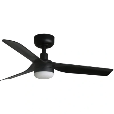 General description This DC Ceiling Fan Mini Punt S BL-BL features a sleek design with a matt black finish, making it an ideal choice for smaller rooms under 13 m². It combines functionality with style, offering integrated lighting and an energy-efficient DC motor. Technical specifications Voltage: 220-240 V ~ 50/60 Hz Diameter: 90 cm / 35" Height: 26.3 cm / 10.3" Ceiling to blades: 17.3 cm / 6.8" Diameter canopy: 13 cm / 5.1" Max. ceiling slope: 12° Weight: 3.5 kg / 7.5 lbs Motor wattage: 3.8 / 5.3 / 7.9 / 12.8 / 18.7 / 26.8 W Revolutions per minute: 113 / 150 / 195 / 244 / 286 / 327 Max. airflow: 141.8 m³/min / 5007 CFM IP Rating: IP20 Lighting: 10 W SMD LED (included) Lumens: 944 lm Colour temperature: 2700 / 4000 / 6000 K CRI: 85 Dimmable: Yes Compatibility and accessories Includes remote control with 6 fan speeds, lighting on/off/dimmer, colour temperature adjustment, timer, and running direction control. Installation Suitable for sloping ceilings. Usage Features summer-winter