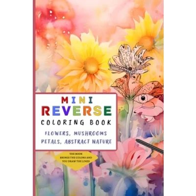 Mini Reverse Coloring Book for Adults: Flowers, Mushrooms, Petals and Abstract Nature Watercolor Illustrations where You Draw the Lines 6x9 Pocket Size (Reverse Books)