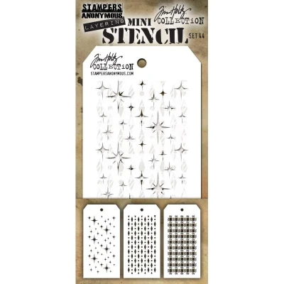 Mini Stencil Set #44 Set of 3 - Tim holtz mini layered stencils These Mini tag shaped stencils can be used to layer with inks, stains, paints, and more!Stencil measures approximately 3.125 x 6.250 inches.3 stencils to a set. Proudly made in the USA by Stampers Anonymous. L21.6,W19,H0.5 cm THE2020B MST044 AGMST044 AGMST044 MPN MST044