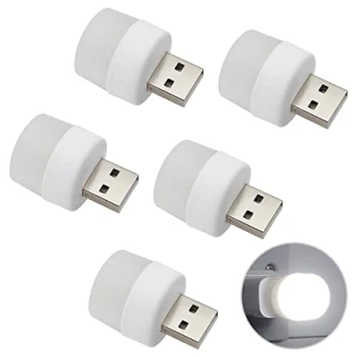 Mini USB Light 1w LED Night Cool White Bright Glow Lamp 5 Pack USBNLCW