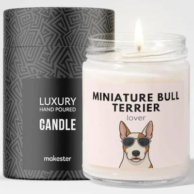 Miniature Bull Terrier Gift Luxury Soy Wax Candle Vanilla, Jasmine, Sugared Almond Makester