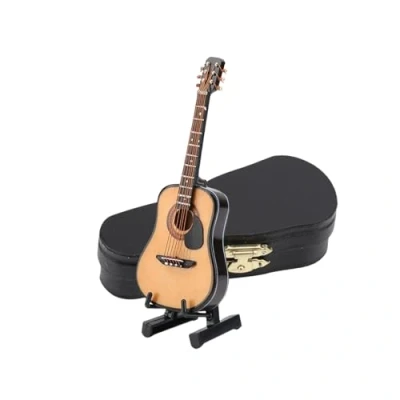 Miniature Guitar, Mini Wooden Guitar Model with Stand and Case for Home Office Ornament Gift(10CM)