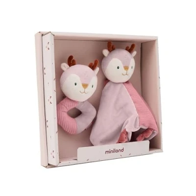 Miniland Baby Gift Set with Rattle and Doudou, Soft Sensory Toy from Birth, Perfect Newborn (Deer)