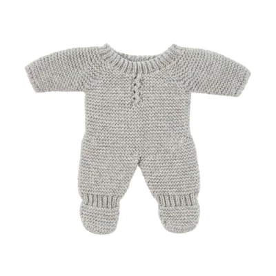 Grey knitted pajamas for doll 21 cm. No fastening or small parts. Made in Spain with quality recycled textile to reduce the environmental impact. Compatible with 21cm Miniland Dolls Dolls Suitable for children from 10 months. Miniland Dolls Collection. Encourages equality, inclusion and diversity from children., Manufacturer: Miniland
