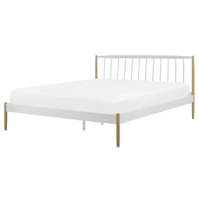 Minimalist Retro EU King Size Metal Bed Frame 5ft3 Wooden Legs White Maurs