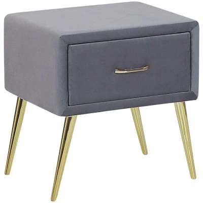 Minimalist Upholstered Bedside Table Nightstand Velvet 1 Drawer Grey Flayat
