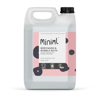Miniml All Natural Body Wash and Bubble Bath 5L Refill Moisturising Pink Grapefruit Aloe Vera Sensitive Skin Eco Shower Gel Soak Vegan Friendly Hand, Face & High Foam Scrub