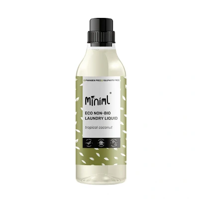 Miniml Laundry Liquid - Tropical Coconut 1L is a plant-powered, eco-friendly, non-bio detergent that cleans effectively at low temperatures, protects colours, and leaves a refreshing tropical coconut scent. Suitable for all fabrics and washing methods, it’s gentle on skin, biodegradable, and part of a zero-waste refill system.