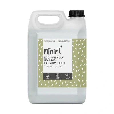 Miniml Laundry Liquid Tropical Coconut 5L is a plant-based, eco-friendly laundry detergent with a tropical coconut fragrance, offering powerful stain removal for up to 250 washes. Gentle on sensitive skin and suitable for all washing machines, it leaves clothes clean, fresh, and soft without harsh chemicals.