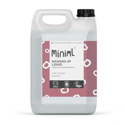 Miniml Eco Washing Up Liquid 5L Refill Wild Rhubarb & Lemon Scented Non Bio Skin Sensitive Friendly Dish Wash Cleaner Plant Based Vegan Cruelty Free Natural Cleaning Products (500 Washes)