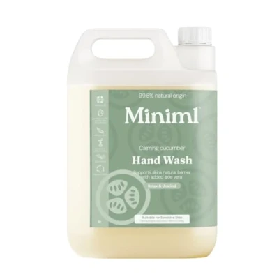 JoybuyMiniml Hand Wash Cucumber&Aloe Vera (5L) is a gentle, non-toxic formula that cleanses while softening sensitive hands, with a refreshing natural scent. Eco-friendly, vegan, and biodegradable, it supports zero waste through a bottle return program across the UK.