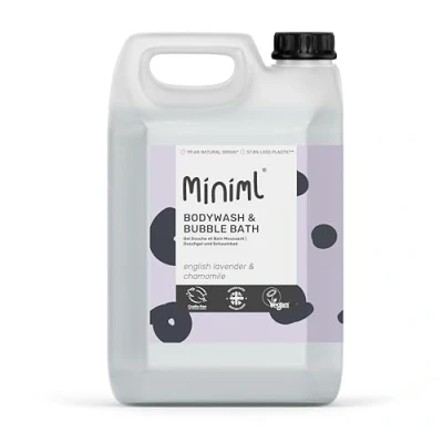 Miniml Natural Eco Hair Body Wash and Bubble Bath 5L Refill Lavender Chamomile For all skin types Hypoallergenic Dermatologically Tested Sulphate & Paraben Free, Vegan Cruelty Free