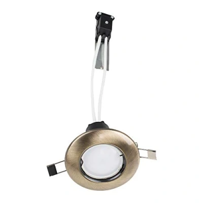 6 x Quality MiniSun Mains GU10 Downlight. Round Metal Ceiling Fitting Antique Brassed Finish. Terminal Box & GU10 Lampholder Supplied. No Transformer Required MEASUREMENTS - Width 8.8cm x Height 8.8cm x Depth 8.8cm. Comes Complete with 6 x MiniSun Branded 5w GU10 LED Bulb - 6500K Cool White Reference Number: 07684