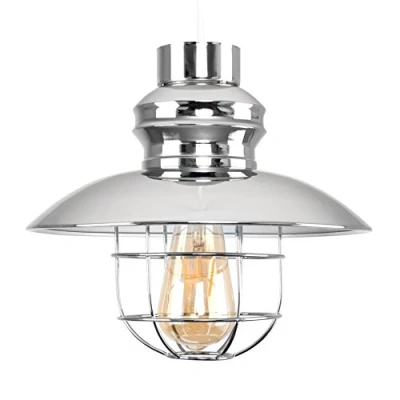 Fisherman's Style Ceiling Pendant Light Shade. Easy Fit - No Electrical Installation Required Silver Chrome & White Interior Painted Metal Finish. Ideal For Kitchens, Dining Rooms, Hallways and More Measurements: Height 265mm x Diameter 280mm 1 x 60w BC B22 GLS Bulb is Required - Not Supplied Reference Number: 21660