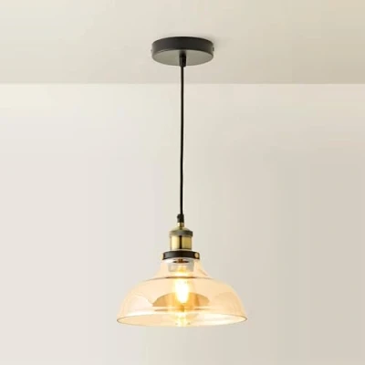CEILING LIGHTS - Industial Steampunk Style Ceiling Pendant Light Fitting in a Black and Gold Metal Finish with an Amber Tinted Clear Glass Tapered Light Shade DECORATIVE - This fixture features contrasting decorative details that add a stylish touch to your space. Ideal for kitchens, dining rooms, and other living areas, it enhances the ambiance while complementing various interior designs. WARRANTY - For peace of mind, this includes a 12 month warranty to cover you and ensure you can be confident in your purchase. MEASUREMENTS - Width 24cm x Height 105.5cm x Depth 24cm. ABOUT US – At ValueLights, our commitment is as clear today as it was the day we opened our doors back in 2009: to become the go-to people for lighting. As a UK-based team, we design and dispatch our products from our home in the UK, bringing together quality, style and a wide range of lamps, lights, shades and bulbs.