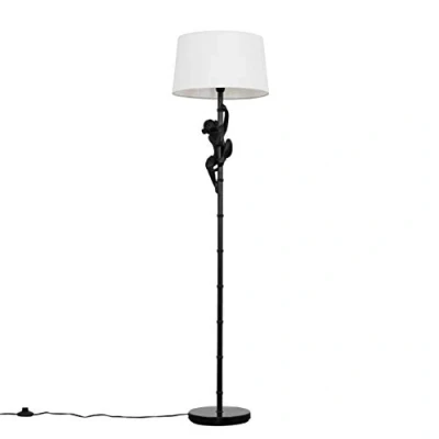 MiniSun Modern Black Hanging Monkey Floor Lamp with a White Tapered Shade Complete 6w LED Bulb [3000K Warm White]