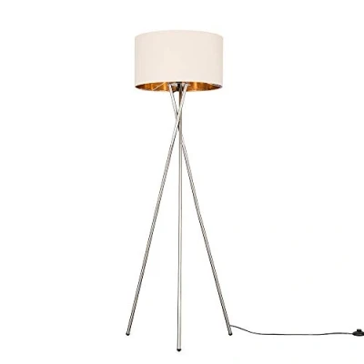 MiniSun Modern Brushed Chrome Metal Tripod Floor Lamp with a Beige and Gold Shade Lamps & Torchieres, Home Décor, Improvement Lifestyle Essential
