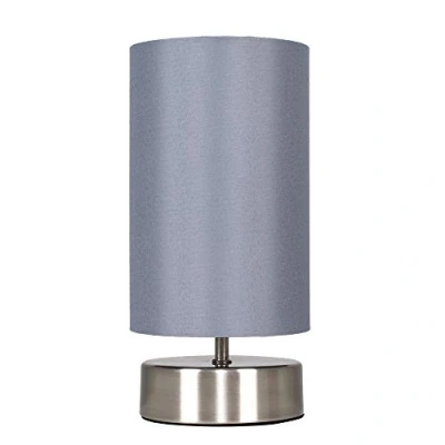 MiniSun Modern Brushed Chrome Touch Dimmer Bedside Table Lamp with Grey Cylinder Light Shade Complete a 5w Dimmable LED Candle Bulb [3000K Warm White]