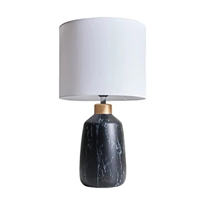 Modern Cylinder Shaped Table Lamp in a Black Marble Effect Finish. Complete with a White Drum Shade In-Line On/Off Switch. Ideal for Lounges, Hallways, Bedrooms and Other Living Areas Measurements: Height 440mm x Diameter 250mm 1 x Maximum Wattage 40w ES E27 Candle or the Equivalent LED Bulb is Required - Not Supplied Reference Number: B2901
