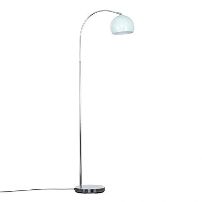 MiniSun Modern Designer Style Polished Chrome Curved Stem Floor Lamp with a Gloss Pale Blue Arco Metal Dome Light Shade