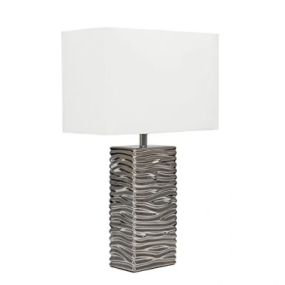 MiniSun Modern Silver Ripple Effect Ceramic Table Lamp with a White Light Shade