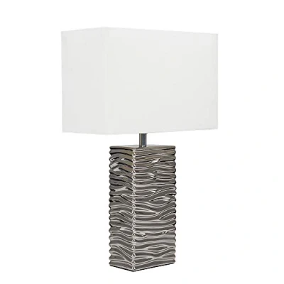 Modern Textured Rippled Effect Table Lamp in a Silver Ceramic Finish. Complete with a White Fabric Light Shade In-Line On/Off Switch. Ideal for Lounges, Hallways, Bedrooms and Other Living Areas Measurements: Height 470mm x Width 305mm x Depth 145mm Comes Complete with 1 x MiniSun Branded 4w LED SES E14 Candle Bulb - 3000K Warm White Reference Number: A0256