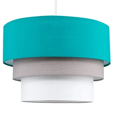 AmazonPENDANT LIGHT - Update your living space with the latest trends in lighting with this Round Modern 3 Tier Fabric Ceiling Pendant Light Shade in Teal. Mixing quality materials and stylish designs, our range of products are perfect for adding a modern style to your home. NONE ELECTRIC SHADE - This product is a shade only and requires no electrical installation - simply fit it to your existing light socket for a quick and easy update. Please note: ceiling rose and flex are not included. CONTENTS - Bulb Included - 1 x MiniSun 10w BC B22 GLS. These bulbs give equivalent light output to a 100W standard incandescent/halogen bulb. MEASUREMENTS - Height 200mm x Diameter 300mm. ABOUT US – At ValueLights, our commitment is as clear today as it was the day we opened our doors back in 2009: to become the go-to people for lighting. As a UK-based team, we design and dispatch our products from our home in the UK, bringing together quality, style and a wide range of lamps, lights, shades and bulbs.