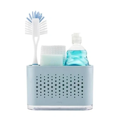 Minky Slimline Sink Tidy, Caddy with Removable Drip Tray, Kitchen Storage Organiser, Brush and Sponge Holder for Sink, Cleaning Made in The UK (Slate Blue)