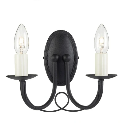 Minster 2 Light Indoor Candle Wall Black, E14