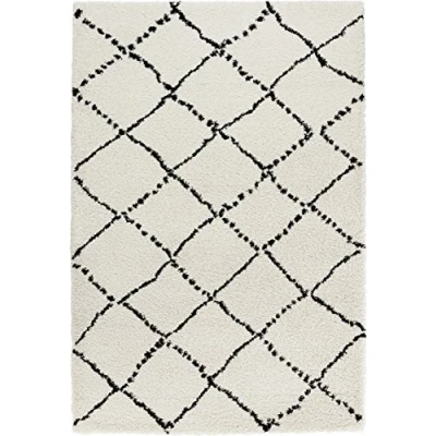 Mint Rugs Allure High Pile Living Room Rug Soft Fluffy Long Shaggy Flokati Diamond Pattern for Kitchen Hallway or Bedroom Cream Black 120 x 170 cm