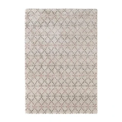 Mint Rugs Cameo High Pile Living Room Rug Soft Fluffy Long Shaggy Flokati Geometric Pattern for Kitchen Hallway or Bedroom Cream Pink 160 x 230 cm