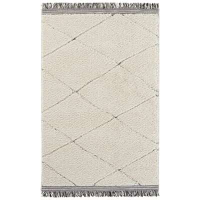 Mint Rugs Danaki High Pile Living Room Rug with Fringe, Soft Fluffy Long Shaggy Flokati Skandi Diamond Pattern for Kitchen, Hallway or Bedroom, Low Structure, Cream Grey, 80 x 150 cm