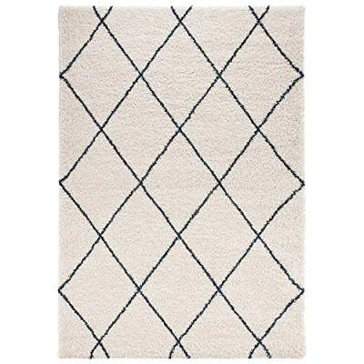 Mint Rugs Feel High Pile Living Room Rug Soft Fluffy Long Shaggy Flokati Diamond Pattern for Kitchen Hallway or Bedroom Cream Petrol 80 x 150 cm