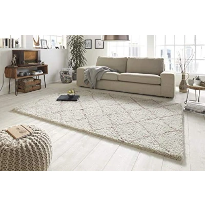 The deep pile rug comes in a modern design with geometric diamond, which allows it to be perfectly integrated into your existing home style. Perfect for your living room, bedroom or children's room The rug from the Allure collection is not only particularly soft and fluffy with its 35 mm deep pile, but also sound-absorbing The high-quality workmanship and its synthetic fibres made from 100% polypropylene make the rug extremely durable and can be cleaned by washing with carpet shampoo thanks to the synthetic fibres SUITABLE FOR ALL UNDERBOARDS - The carpet is suitable for any underfloor such as: parquet and laminate floors. Our long-pile rug is ideal even for underfloor heating Quality and short transport routes are very important to us, so all our products are made in Europe